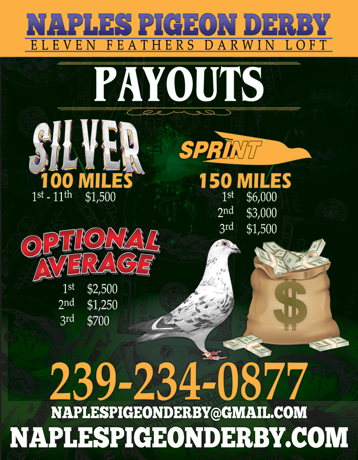 Naples Pigeon Derby is a race designed for those pigeon fanciers wishing to test their birds at a high level of competition and for an extremely low budget.