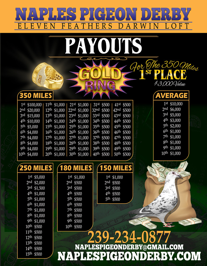 Naples Pigeon Derby is a race designed for those pigeon fanciers wishing to test their birds at a high level of competition and for an extremely low budget.